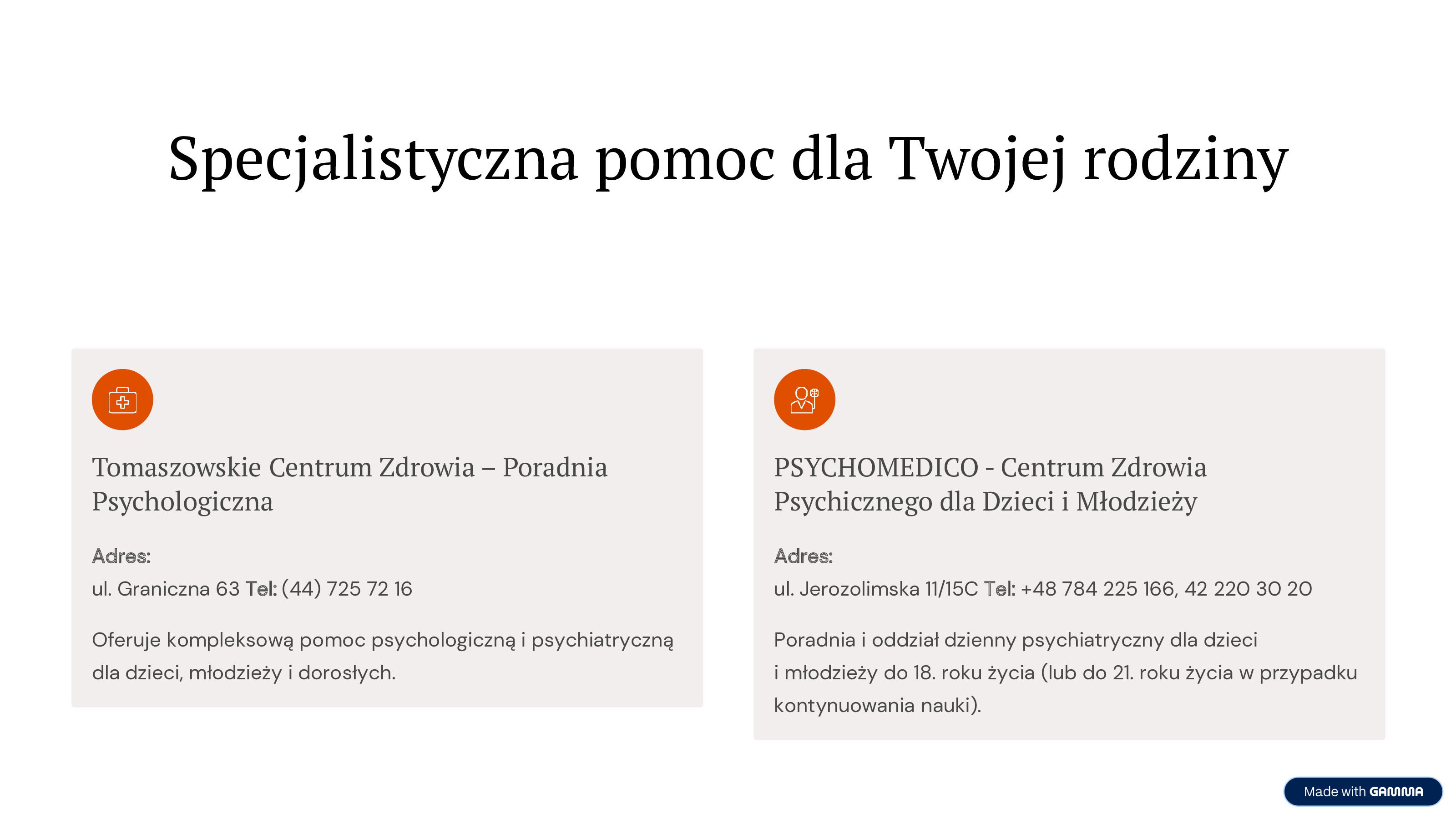 Oferuje kompleksową pomoc psychologiczną i psychiatryczną dla dzieci, młodzieży i dorosłych.