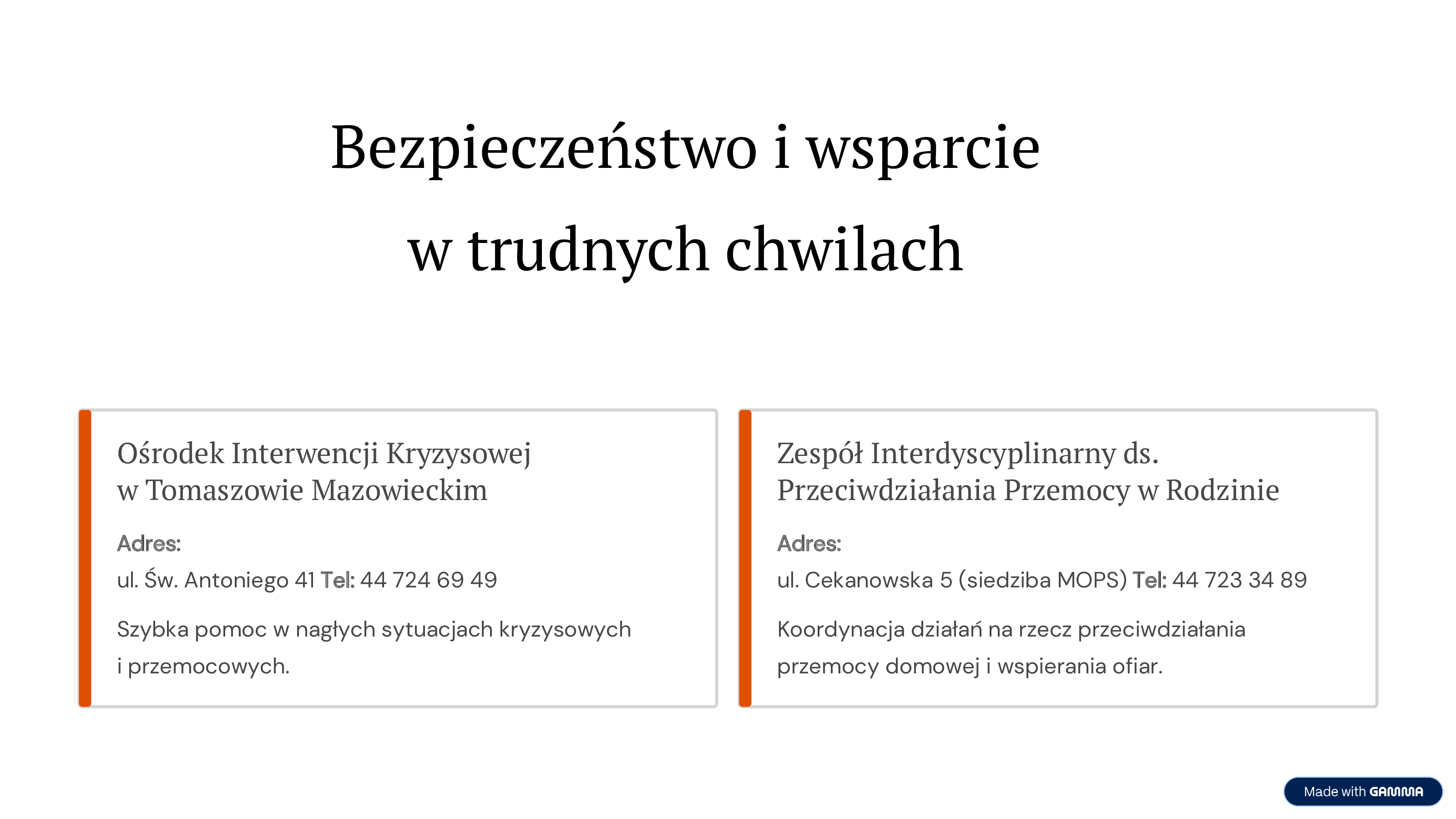 Ważne telefony i adresy