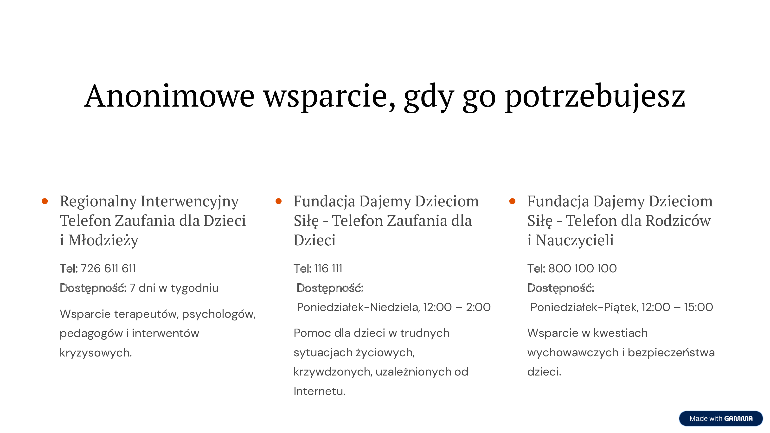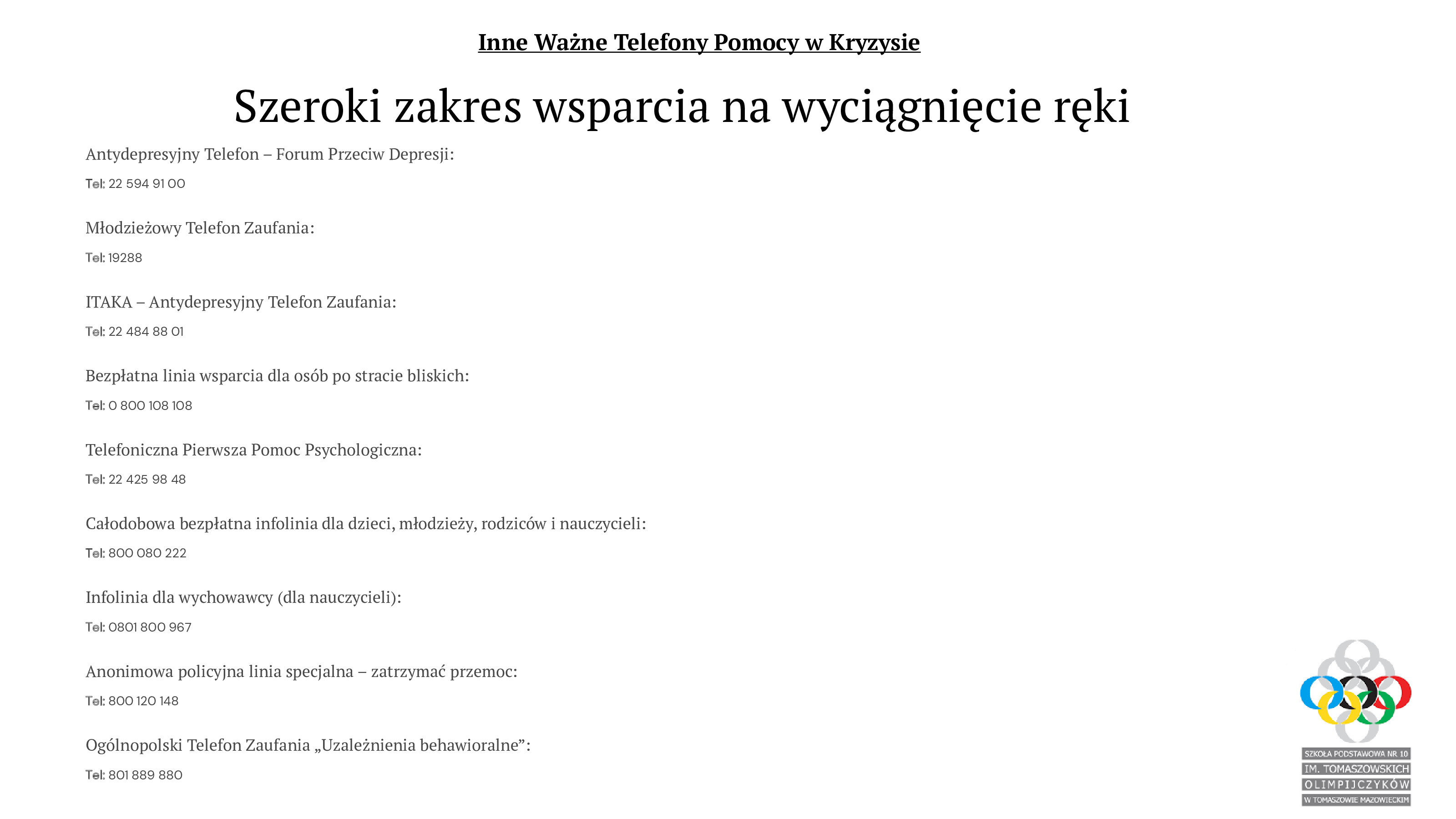 - Całodobowa bezpłatna infolinia dla dzieci, młodzieży, rodziców i nauczycieli: 800 080 222