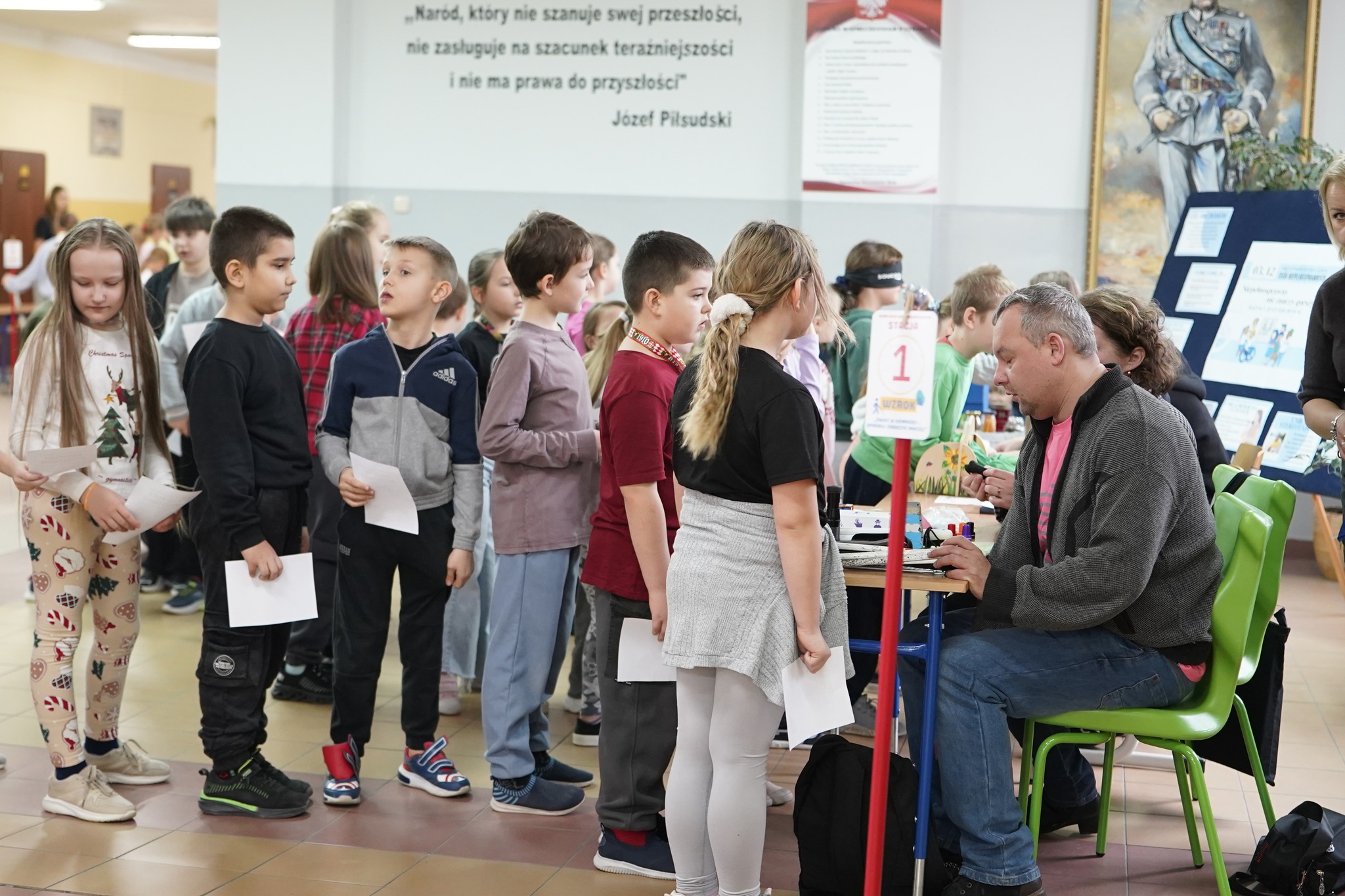 Ogromne podziękowania należą się uczniom klas 7b, 8b i 8s, którzy obsługiwali stacje i wspierali młodszych kolegów. To oni pokazali, jak jeździ się na wózku inwalidzkim i pokonuje przeszkody, jak malować przy użyciu stopy, jak zamigać własne imię, rozpoznawać zapachy i kształty bez wzroku czy zrozumieć, jak funkcjonują osoby z trudnościami w przetwarzaniu informacji i nadmiarem bodźców.